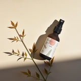 1BODY + MIND: An aroma-therapeutic mist to calm and soothe tired and stressed skin, hair and senses. Spray around your personal space and above your head for a cozy aura before doing, being and dreaming. Custom blend of essential oils are chosen to add botanical benefits and light moisture when used on skin.